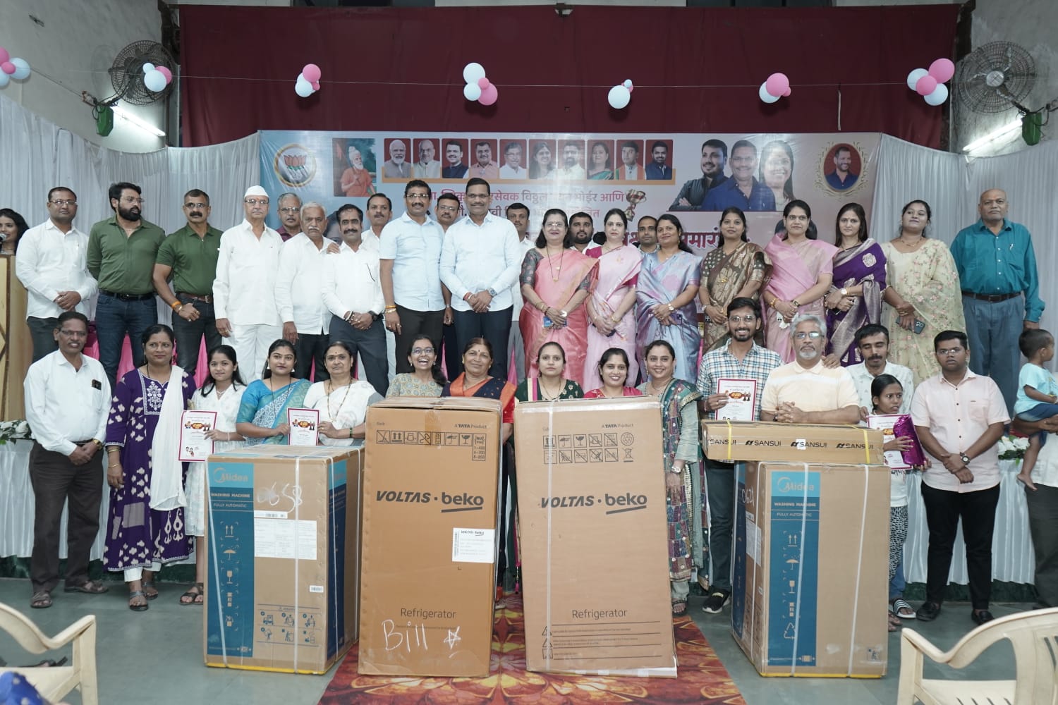 पाचवा – हेमलता शिवनारायण जाजू (ऑपरेशन सिंदुर देखावा) विजेत्यांना एलईडी टीव्ही, वॉशिंग मशीन, फ्रिज, पैठणी आणि इस्त्री अशी आकर्षक बक्षिसे प्रदान करण्यात आली तसेच सर्व स्पर्धकांना स्मृतिचिन्ह भेट देऊन गौरविण्यात आले.